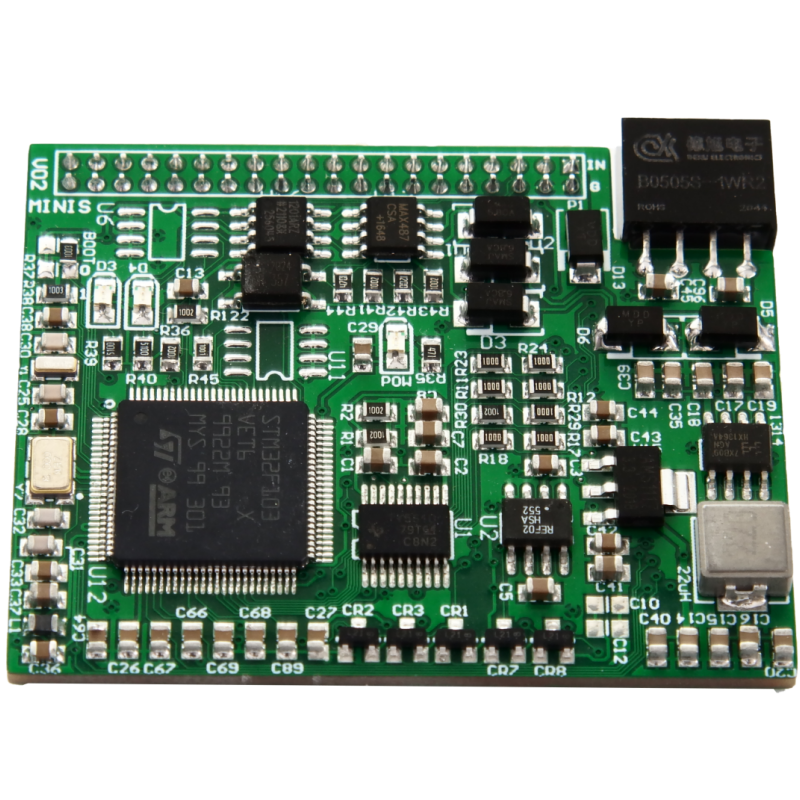 隔離通訊標(biāo)準(zhǔn)的 RS485 MODBUS-RTU 通訊協(xié)議,0-10V12 路 12 位模擬量輸入,8 路模擬量輸出, 12 路開關(guān)量輸入輸出,主控芯STM32F103 系列單片機(jī),雙路隔離 RS485 通訊可同時(shí)與 2 個(gè)上位機(jī)通訊